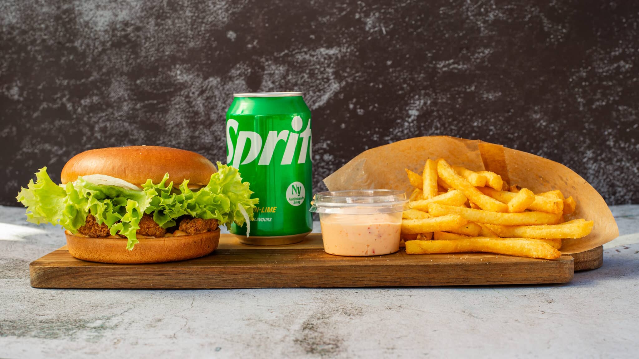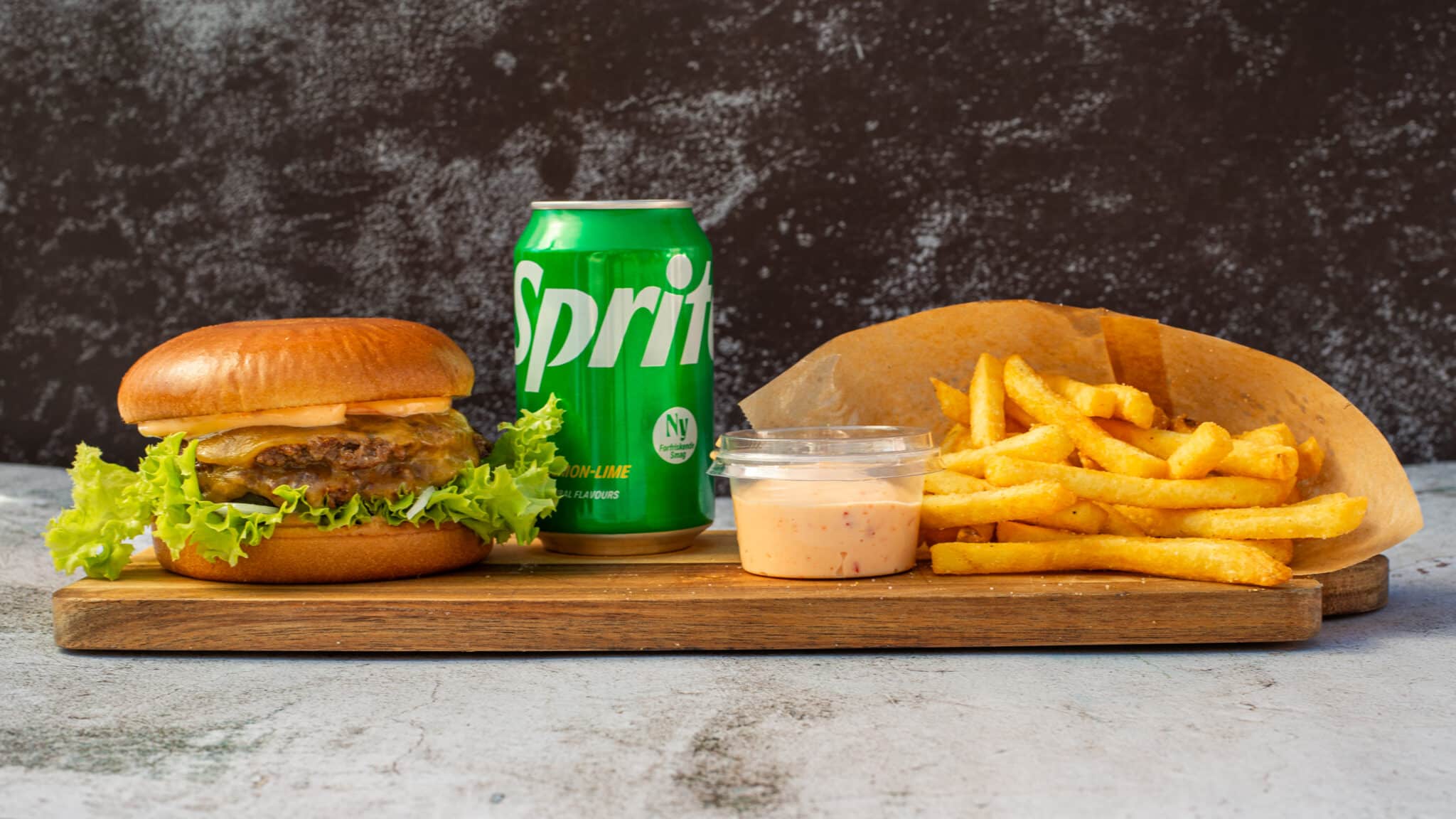 Vores menu består af et varieret udvalg af burgere samt pommes frittes og forskellige snacks – og vi har derfor noget for enhver smag.